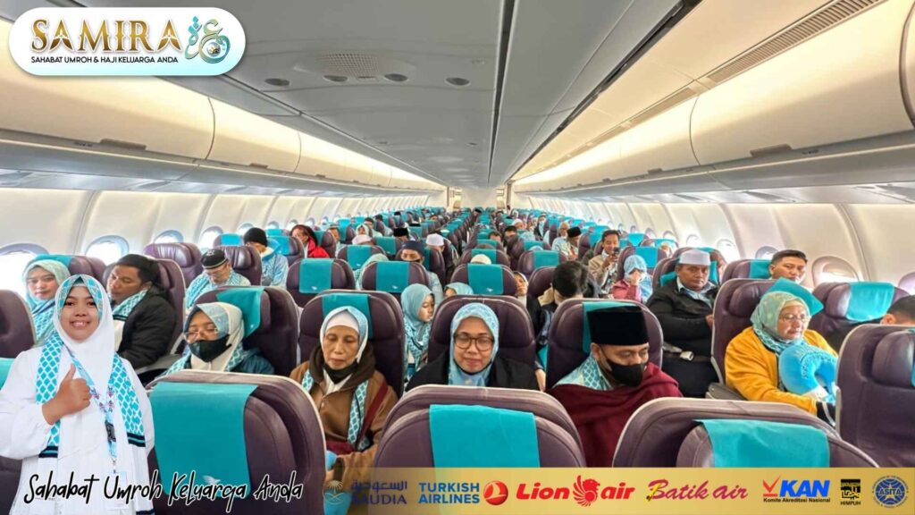 Keberangkatan satu pesawat memudahkan tim Samira dalam memberikan pendampingan penuh. Sebagai travel profesional Batu Malang, Samira dapat mengatur jamaah dengan lebih tertib sejak check-in, boarding, hingga tiba di Arab Saudi.